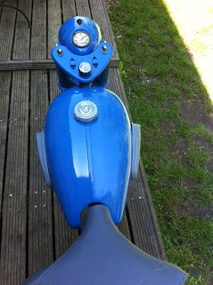 Ici la zône de gauche a était traité avec du Bicarbonate afin, de retirer la peinture sans altérer le support.....possibilité dans ce cas d'avoir un réservoir en acier poli et verni, du plus bel effet.